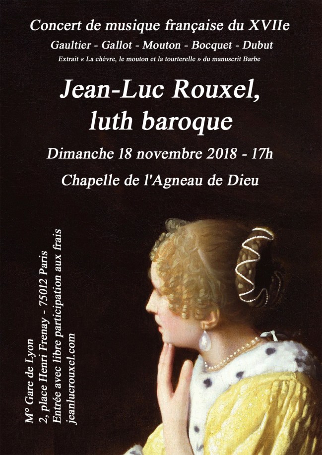Présentation de programme de concert de musique française du XVIIe siècle pour luth, tiré du manuscrit Barbe ; avec comme compositeurs : Gautier, Gallot, Dufaux, Mouton, Edmon …
